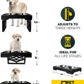 Adjustable & Durable – It offers three different height settings to help dogs reduce tension on their neck vertebrae and enjoy their mealtime.